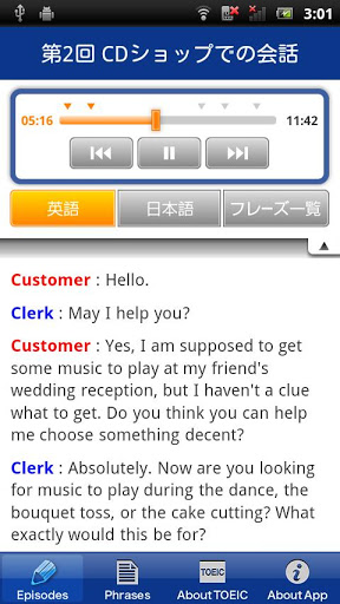 実際の使用シーンでの英会話を聞いて生きた英語を学習! TOEIC公式Android用英語学習アプリ